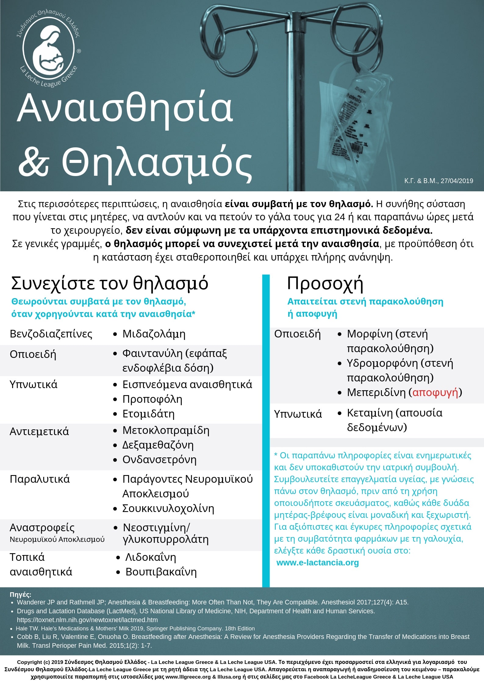 - https://abm.memberclicks.net/assets/DOCUMENTS/PROTOCOLS/15-analgesia-and-anesthesia-annotated-bibliography.pdf Βιβλιογραφία με σχετικές πληροφορίες από Academy of Breastfeeding Medicine (ABM) σχετικά με πρωτόκολλα αναλγησίας και αναισθησίας στα Αγγλικά/English