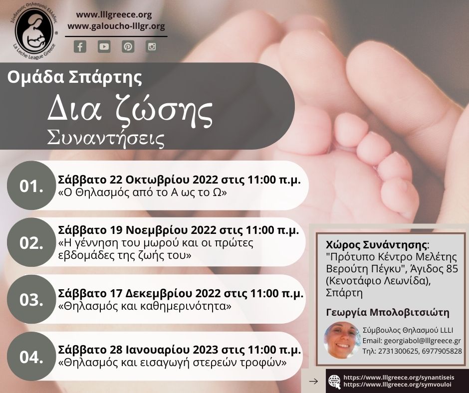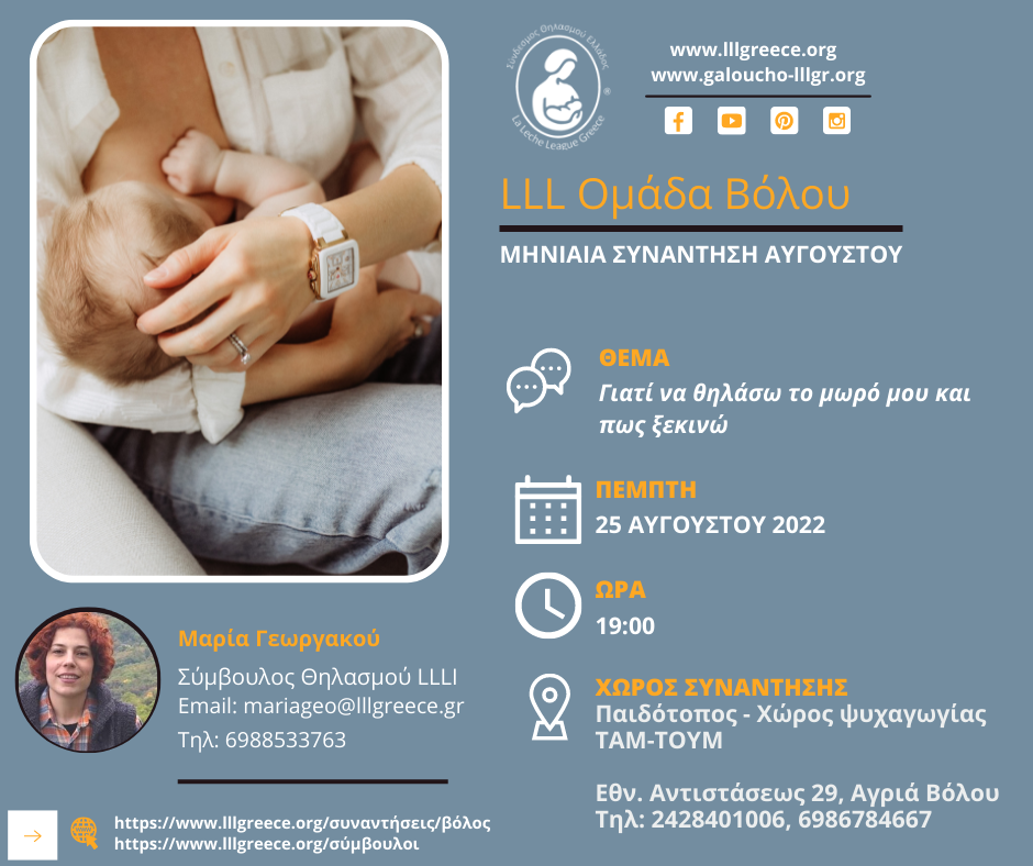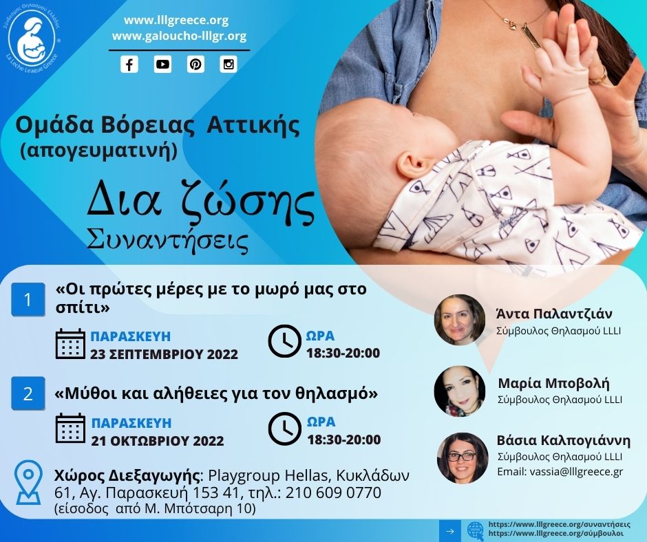 Είτε είσαι έγκυος και αναζητάς πληροφορίες, είτε νέα μητέρα που προσπαθεί να μάθει την τέχνη του θηλασμού, είτε έμπειρη στον θηλασμό μητέρα που αναζητάς ένα περιβάλλον αποδοχής και κατανόησης, θα χαρούμε να σε γνωρίσουμε σε μια από τις επόμενες προγραμματισμένες δια ζώσης Συναντήσεις μας.