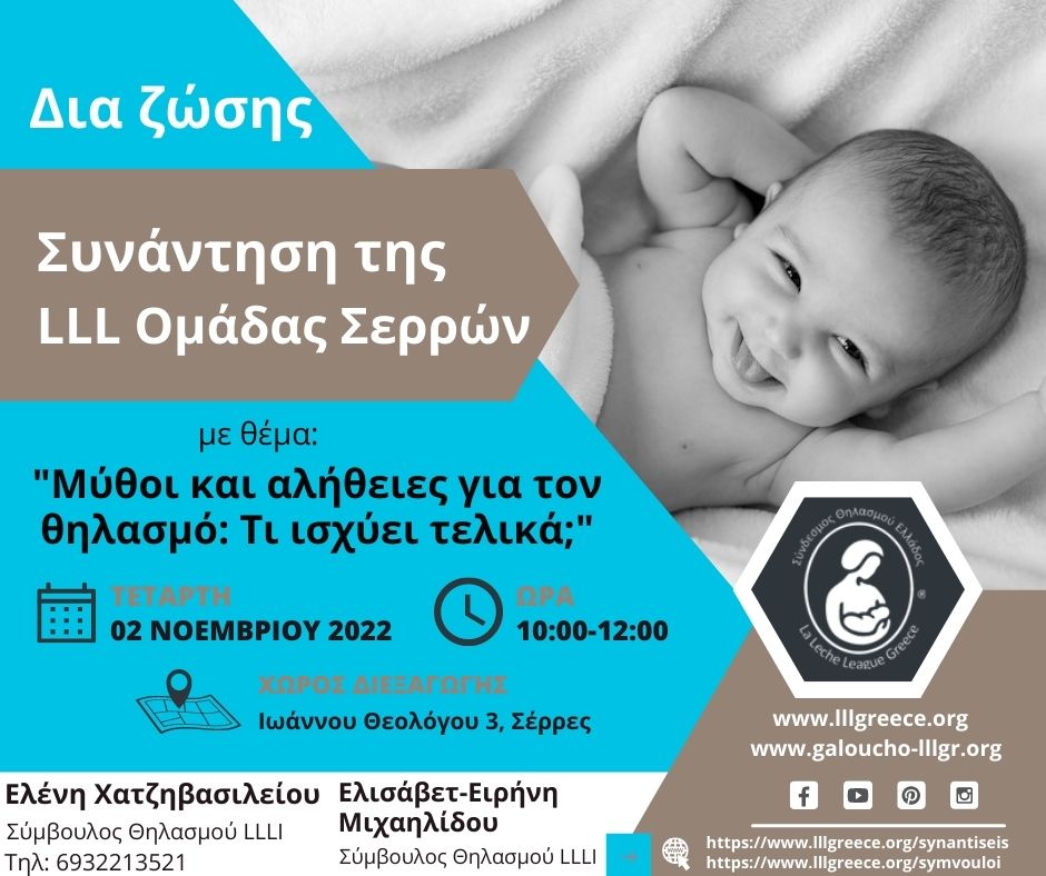 Ανακάλυψε εδώ την τοπική Ομάδα LLL της περιοχής σου και μάθε πότε είναι η επόμενη δια ζώσης Συνάντηση. Έλα να νιώσεις τη μεγάλη αγκαλιά της La Leche League!
