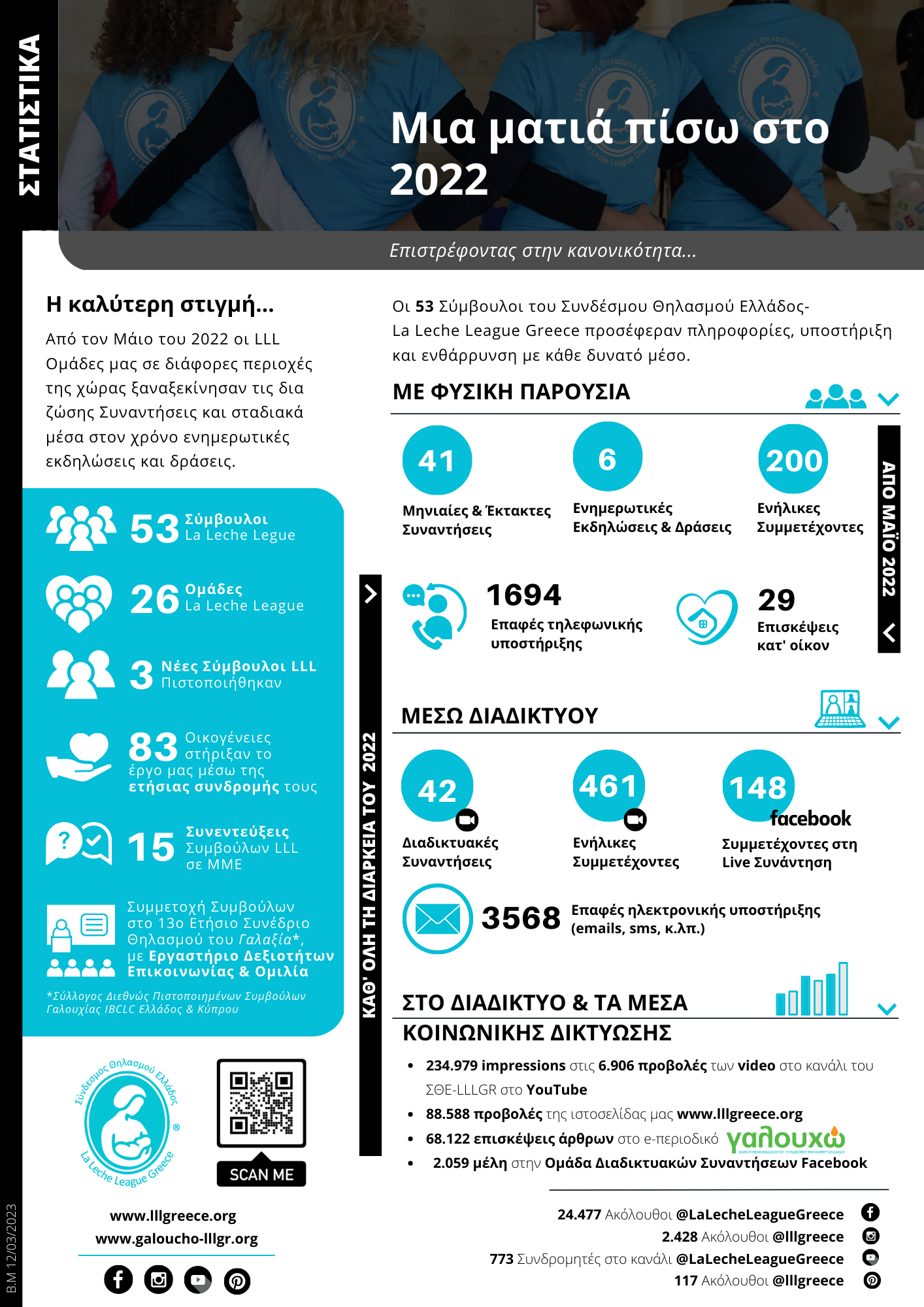 Στατιστικά 2022 για το έργο του Συνδέσμου Θηλασμού Ελλάδος-La Leche League Greece