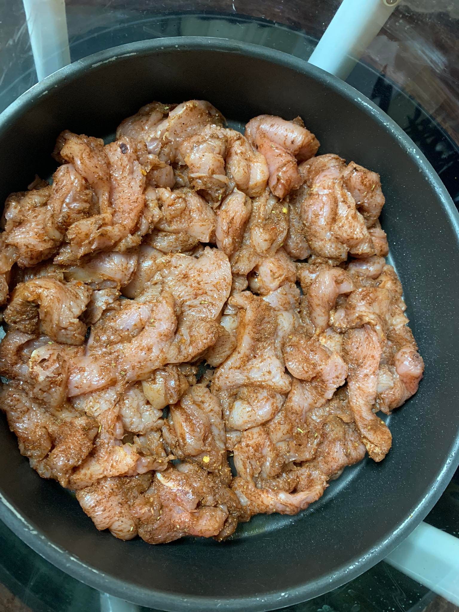 Ζητάμε από τον κρεοπώλη μας να κόψει τη γαλοπούλα σε λεπτές λωρίδες.