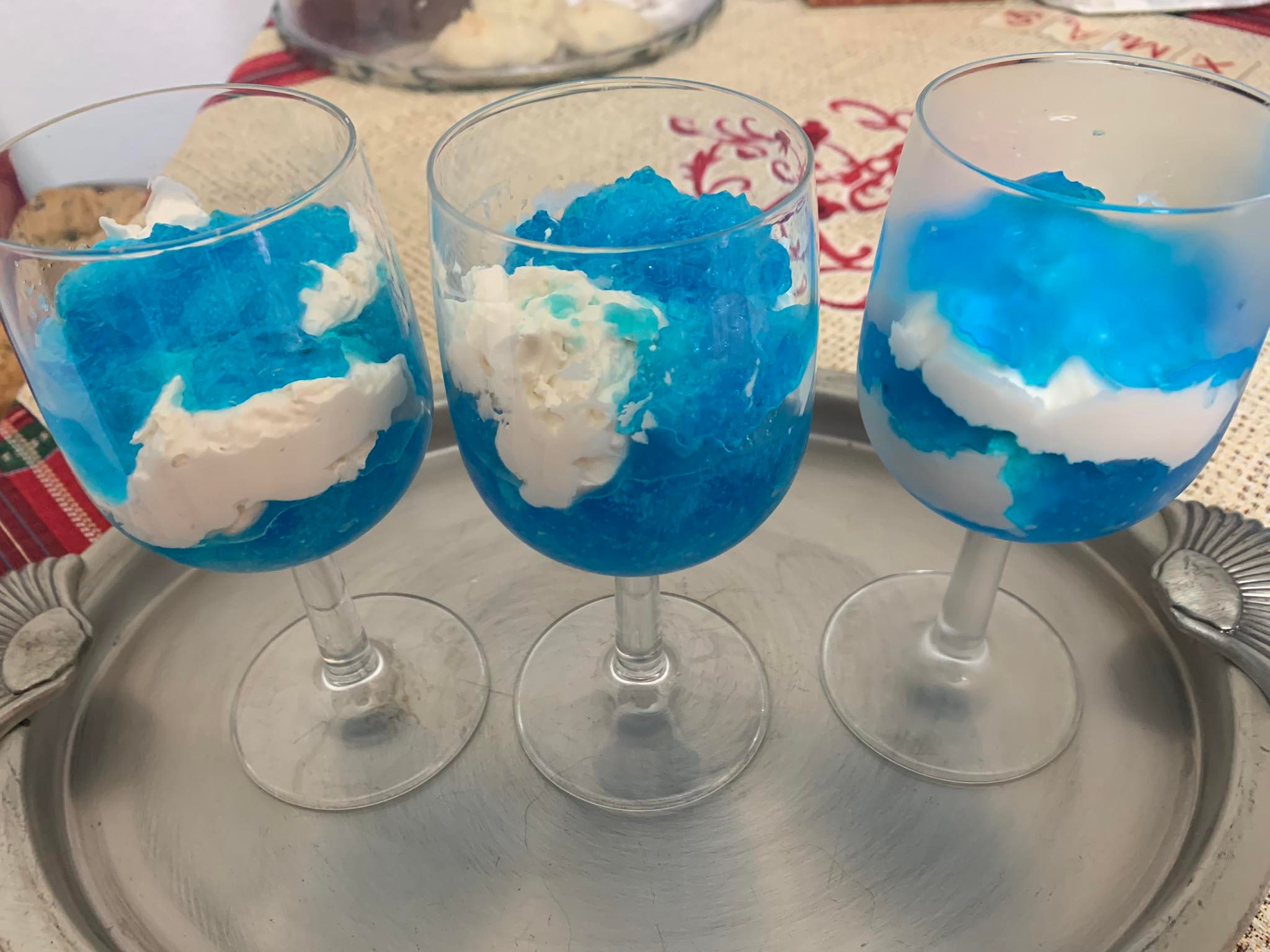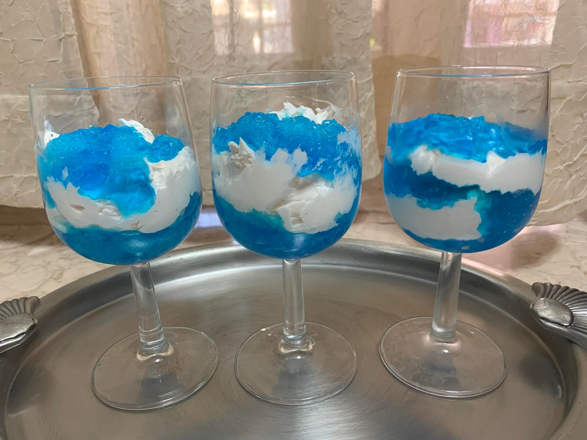Επειδή μπορεί να δυσκολευτείτε να βρείτε ζελέ μπλε χρώματος μπορείτε να φτιάξετε το δικό σας χρησιμοποιώντας κόκκινο ανοιχτό ζελέ (πχ φράουλας) ρίχνοντας μέσα μερικές σταγόνες μπλε χρώματος ζαχαροπλαστικής. Το μπλε χρώμα που θα δημιουργηθεί όμως θα είναι σκούρο.