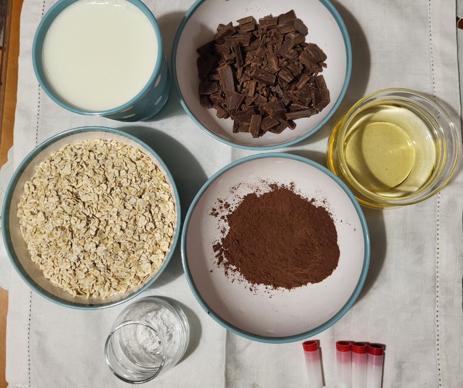 90γρ κομματάκια κουβερτούρας (χρησιμοποιώ με στέβια όμως μπορείτε να βάλετε της αρεσκείας σας)