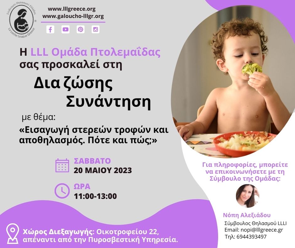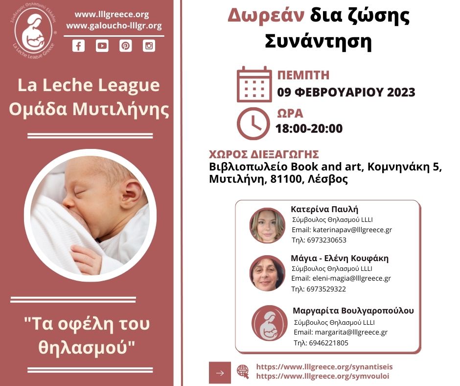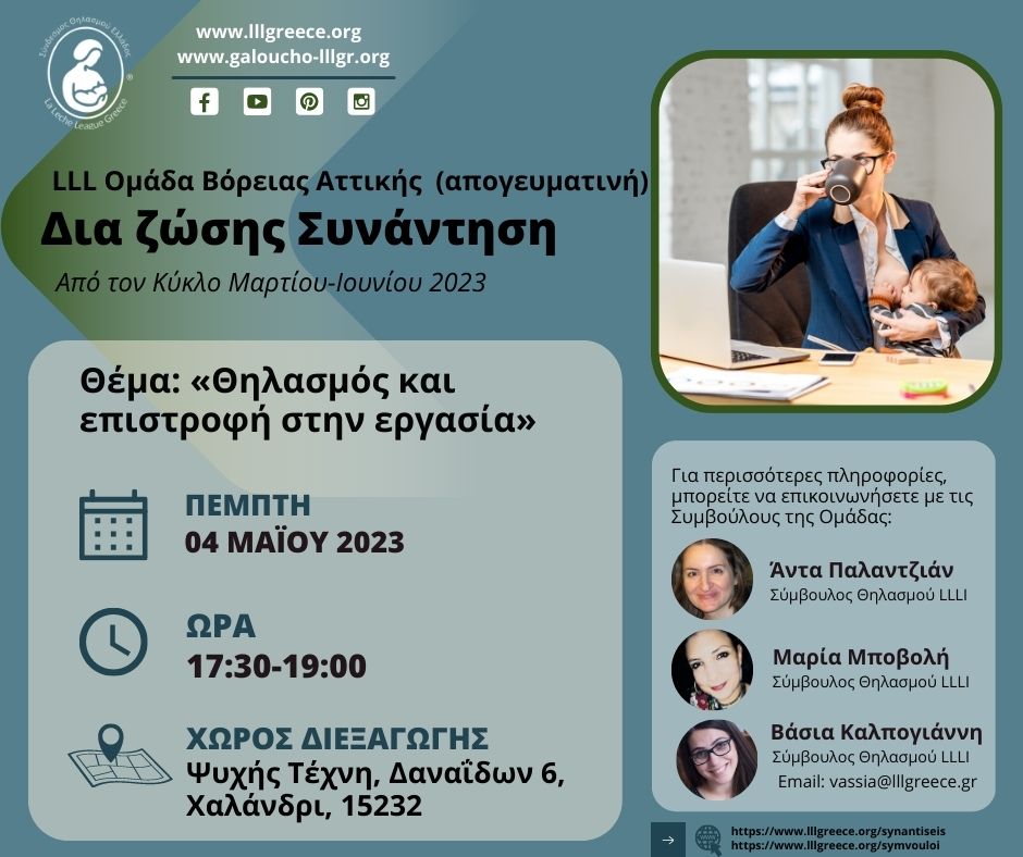 Ανακάλυψε εδώ την τοπική Ομάδα LLL της περιοχής σου και μάθε πότε είναι η επόμενη δια ζώσης Συνάντηση.