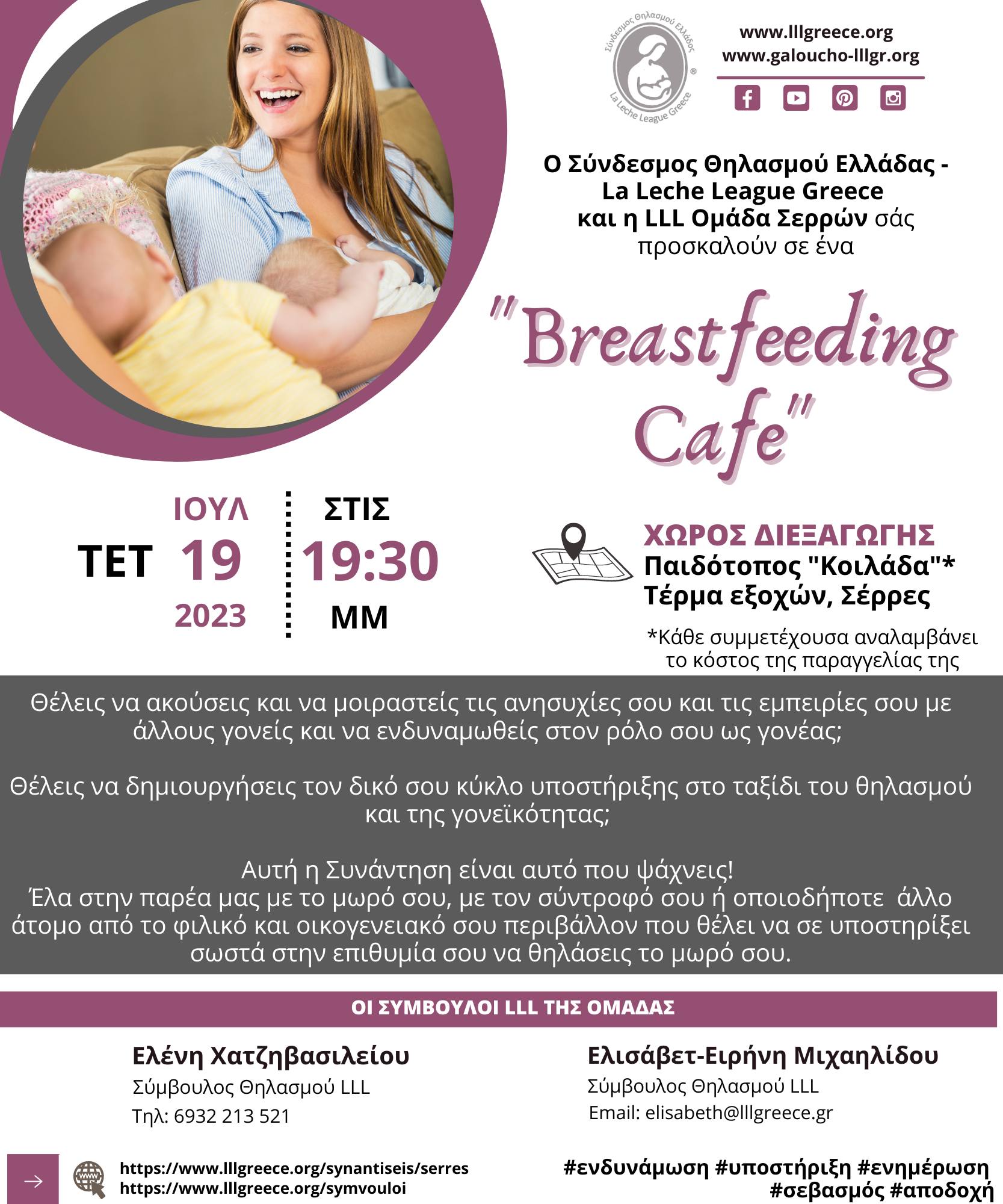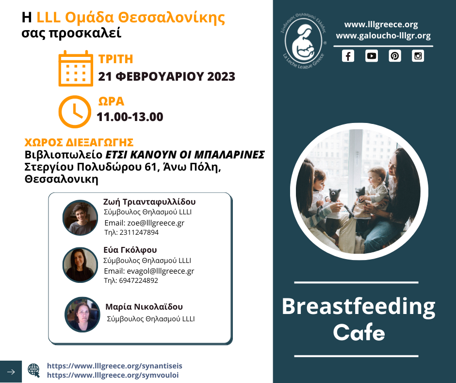 Οι LLL Ομάδες Θεσσαλονίκης, Σερρών και Κω πραγματοποίησαν breastfeeding café από τον Φεβρουάριο εως τον Οκτώβριο του 2023.